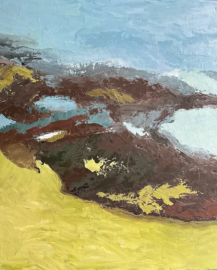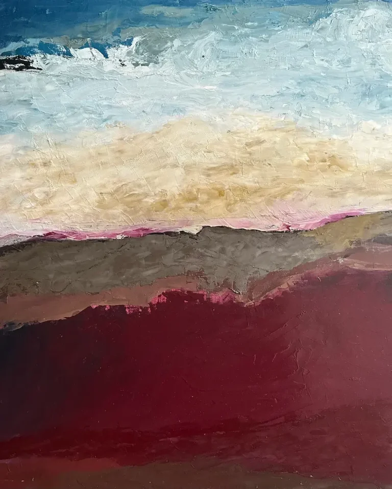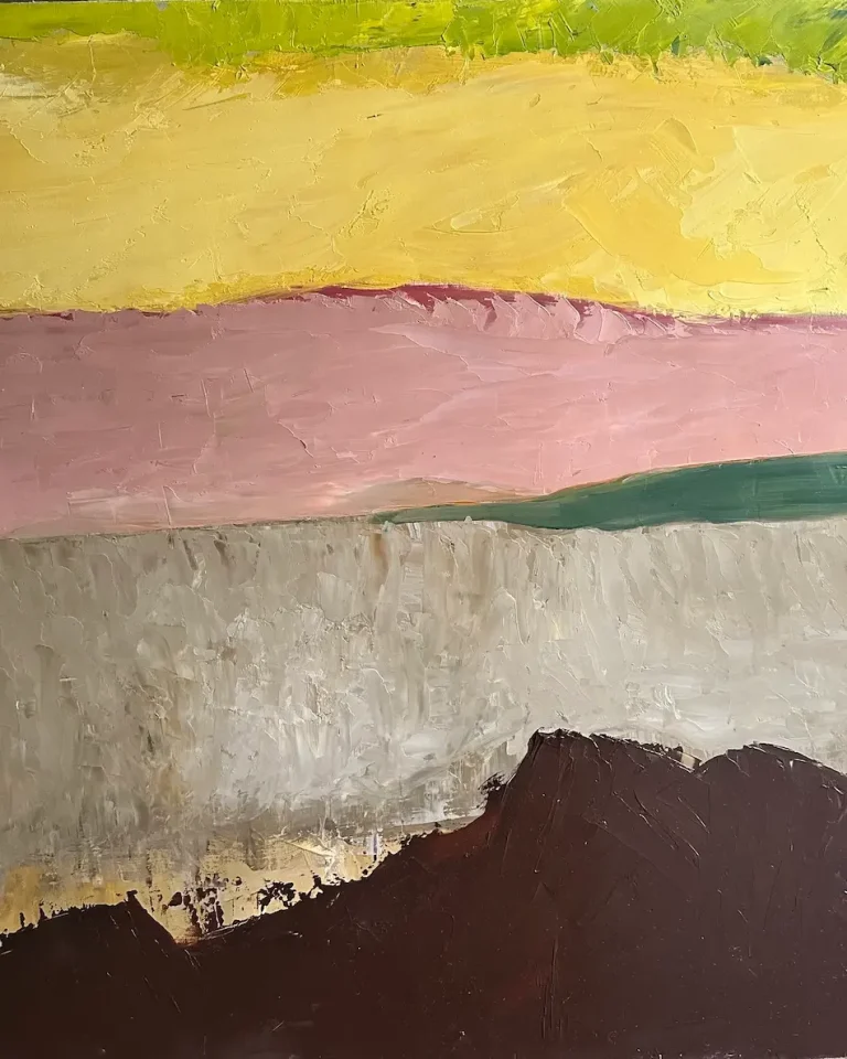 'inspired by the many landscapes she traverses,she gathers impressions that resist literal capture, instead translating into a subtle and layered useof colors
